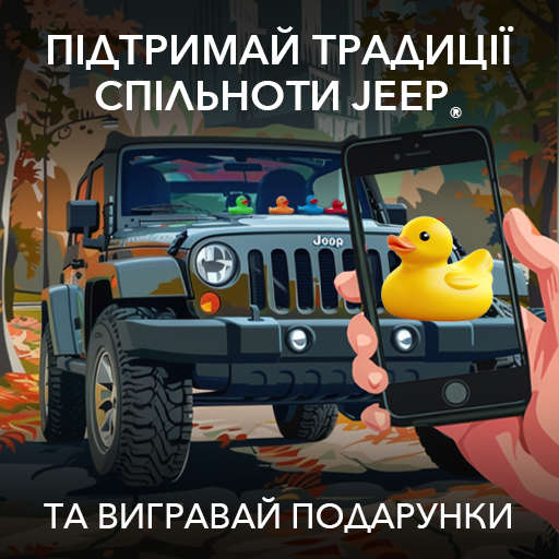 Зауважте, що фотографія має бути зроблена поза межами заповідних зон та без порушень правил дорожнього руху. Конкурс стартує 20 жовтня, а вже 28 жовтня будуть оголошені 50 переможців конкурсу, що будуть обрані випадковим чином; представництво Jeep в Україні подарує по культовій гумовій качці тим, кого вони позначили. А головний переможець отримає унікальний приз — сертифікат на базовий курс позашляхового водіння за кермом Jeep Wrangler.